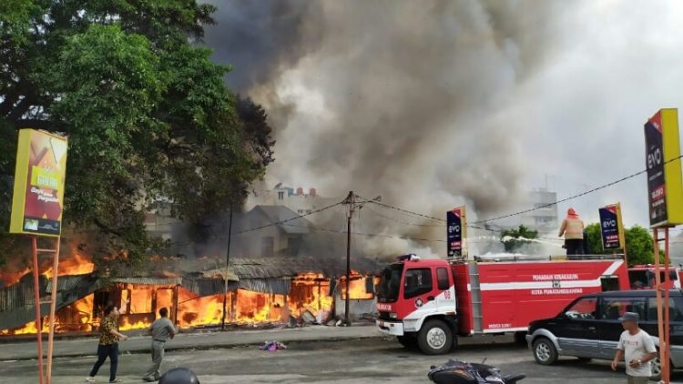 Kebakaran terjadi di Jalan Kartini Bawah, Kelurahan Dwikora, Kecamatan Siantar Barat, Kota Siantar, Senin (16/12/2019). Persisnya di depan Stasiun Kereta Api (KA) Siantar.