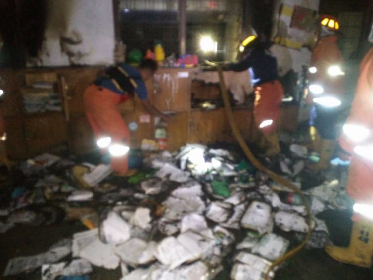 Informasinya, api diduga berasal dari kabel wifi yang berdekatan dengan lemari buku terbakar, dan apinya merambat ke lemari buku di dekatnya, sehingga buku di lemari terbakar.