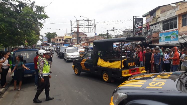Setelah korban dimasukkan ke kantung jenazah dan dinaikkan ke mobil patroli, pihak kepolisian langsung mengevakuasi korban ke ruang instalasi jenazah.