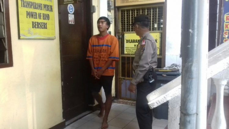 Ferdinand Sitohang (21) warga Jalan SM Raja Desa Silakkitang, Kecamatan Sipoholon, Kabupaten Tapanuli Utara kini dijebloskan kedalam sel tahanan Polres Siantar, Sabtu (19/05/18).