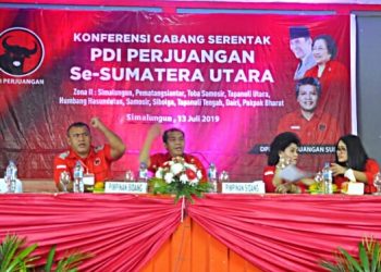 SBNpro - Simalungun Dewan Pimpinan Daerah (DPD) Partai Demokrasi Indonesia Perjuangan (PDIP) Sumatera Utara (Sumut) menggelar Konferensi Cabang (Konfercab) serentak, Sabtu (13/06/2019). Konfercab itu dibagi menjadi 4 zona. Untuk zona I berlokasi...