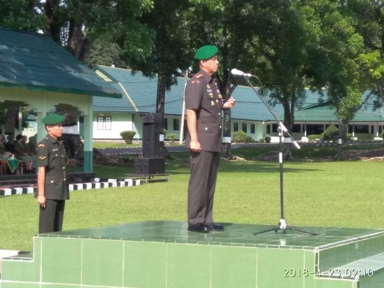 Pangdam I/BB Mayjen TNI Ibnu Triwidodo S.IP diwakili Komandan Rindam (Danrindam) I/BB Pematangsiantar, Kolonel Inf Zainuddin membuka Pendidikan Pertama Tamtama (Dikmata) TNI AD Gelombang I TA 2018 di Lapangan Rindam I/BB Pematangsiantar, Senin (23/04/2018).