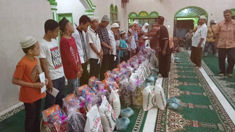 Disuasana bulan Ramadhan dan menjelang hari Raya Idul Fitri (lebaran) 1439 H, jamaah Masjid Rahmat, Jalan Singosari, Kelurahan Martoba, Kecamatan Siantar Utara, santuni anak yatim dan piatu, Sabtu malam (09/06/18).