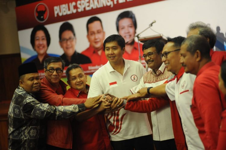 Pantauan, pelantikan Taruna Merah Putih dilakukan Trimedya Pandjaitan dengan membacakan deklarasi yang diikuti seluruh pengurus yang dilantik. Tampak yang dilantik politisi PDI Perjungan Sumut, Brilian Moktar, Ketua DPC Bamusi Medan, Ade Darmawan dan seluruh pengurus.(ril)