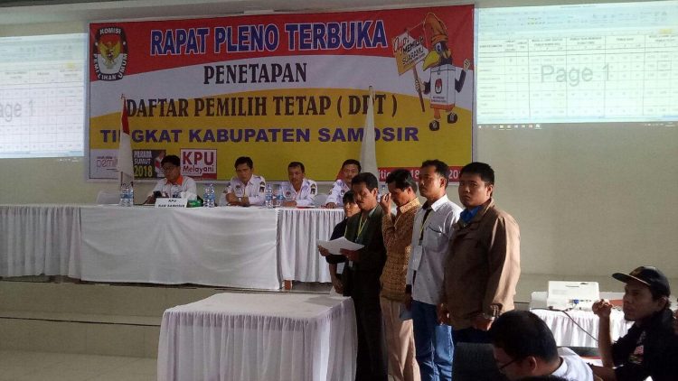 Komisi Pemilihan Umum (KPU) Kabupaten Samosir, menetapkan jumlah Daftar Pemilih Tetap (DPT) pemilihan Gubernur/Wakil Gubernur Sumatra Utara sebanyak 89.830 pemilih, melalui rapat pleno.