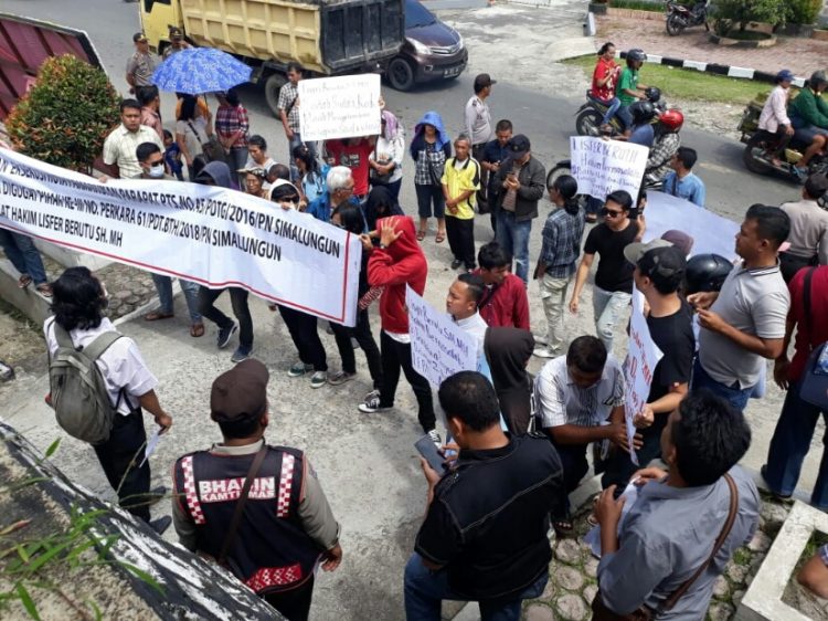 “Ketua PN Simalungun yang baru diminta untuk membatalkan eksekusi tersebut, menunggu putusan perlawanan,” seru puluhan massa yang mendatangi kantor PN Simalungun di Jalan Asahan tersebut.