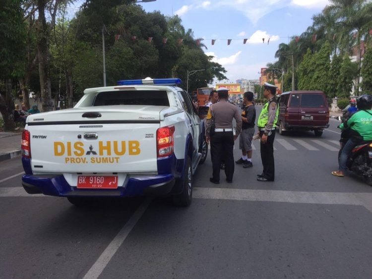 Mobil Dishub Provinsi yang dikendarai H.Hasibuan itu dirazia karena tidak mematuhi Peraturan Lalu Lintas pada saat mengawal rombongan bus pariwisata antar lintas kabupaten/kota, Sabtu (05/05/18) sore sekira pukul 15.00 WIB.