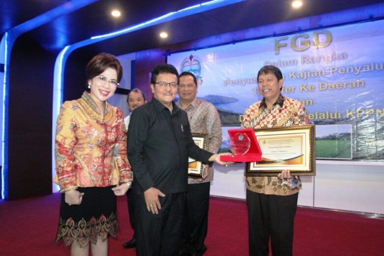 Penyerahan penghargaan dilakukan disela-sela rapat Koordinasi Pemerintah Daerah dan Focus Group Discussion (FGD) dalam rangka penyusunan kajian penyaluran transfer ke daerah dan dana desa (TKDD) melalui Kantor Pelayanan Perbendaharaan Negara (KPPN).