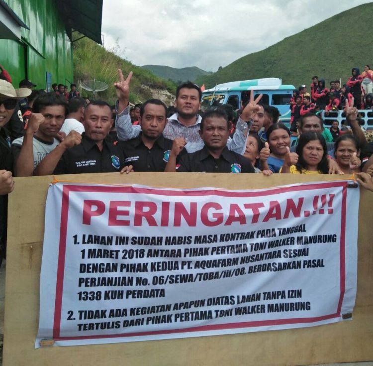 Warga Desa Sirungkungon, Kecamatan Ajibata, Kabupaten Toba Samosir, Jumat (09/03/18), menggelar aksi massa guna menuntut PT Aquafarm Nusantara segera angkat kaki dari wilayah mereka. Alasannya, selain karena kontrak lahan yang sudah habis, aksi tersebut juga ditujukan untuk menjaga serta merawat kelestarian Danau Toba khususnya daerah Kecamatan Ajibata.