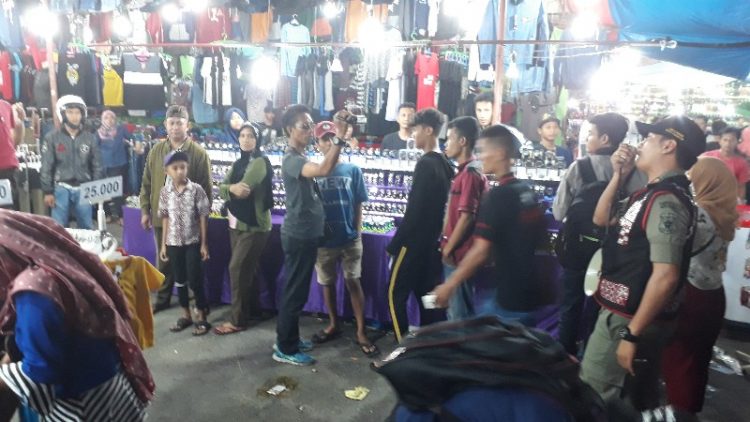 “Sesuai dengan ketentuan yang berlaku, pada jam 24.00 wib, kami himbau agar menutup dagangannya,” tutur petugas Satpol menggunakan pengeras suara, Senin (04/06/18) jam 22.10 wib.