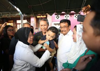 SBNpro – Surabaya Calon Gubernur Sumatera Utara Djarot Saiful Hidayat mengunjungi rumah korban peledakan bom di Gereja Santa Maria, Aloysius Bayu ...