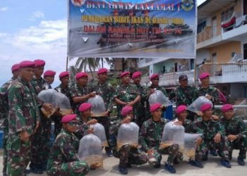 Yon Marinir Gelar Bintahwil dan Tabur Benih Ikan di Danau Toba