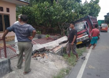 Hindari Tabrakan, Truk Hantam Pagar Rumah