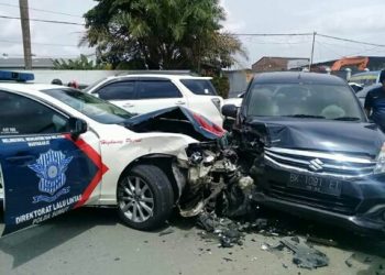 Tabrakan Dengan Suzuki Ertiga, Mobil PJR Dirlantas Poldasu Penyok