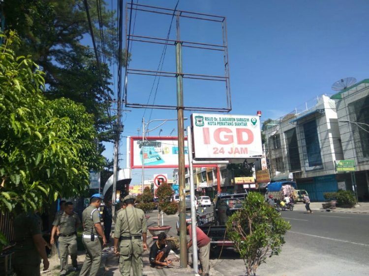 Kemudian, plank baleho yang ada di depan Kosambi Jalan Merdeka, Kelurahan Dwikora, Kecamatan Siantar Barat. Serta dua titik plank baleho dibongkar di depan Rumah Sakit Umum (RSU) Dr Djasamen Saragih.
