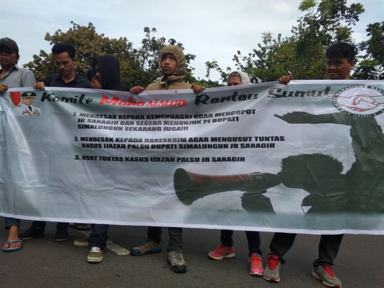 Kedua, mendesak Bareskrim Polri agar mengusut tuntas dugaan ijazah palsu Bupati Simalungun JR Saragih dan ketiga usut tuntas dugaan ijazah palsu JR Saragih. Aksi unjukrasa dimulai pukul 11.00 Wib.