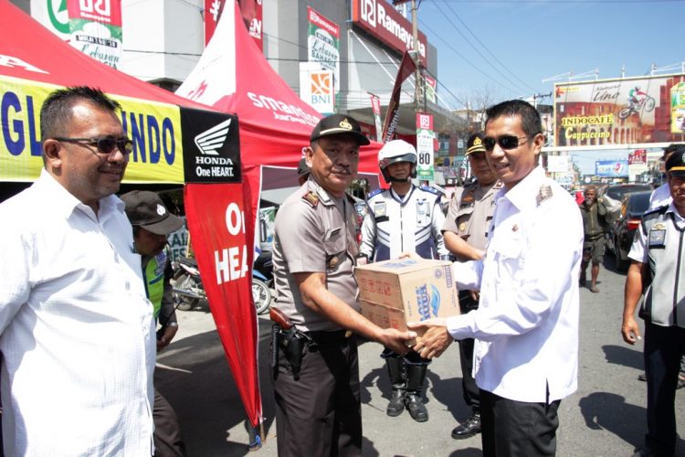 Pada peninjauan itu, Walikota bersama unsur Forkopimda memberikan bingkisan kepada aparat yang bertugas di Pos Pam Lebaran. (Humas Pemko Siantar)